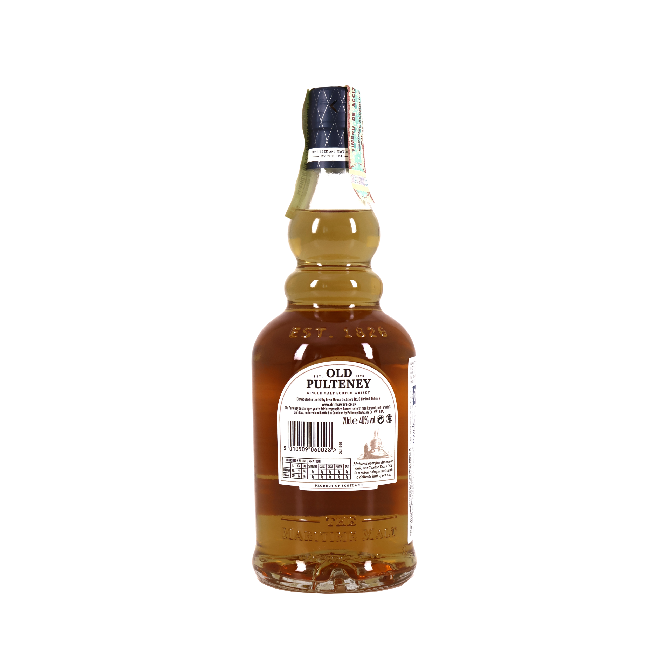 Toate băuturile spirtoase Old Pulteney sunt învechite doar în butoaie de stejar din bourbon, ceea ce oferă băuturii tradițională scotch, un gust puțin aspru. Gustul whisky-ului este sec, de plenitudine medie, neted, cu note de pepene galben, sirop de portocale și alune. Aroma de whisky este plină de tonuri de aer marin, flori și lemn.